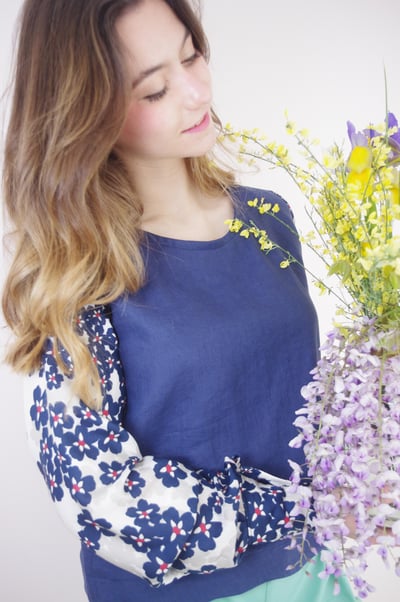 LILA --- blouse en lin à manches fleuries